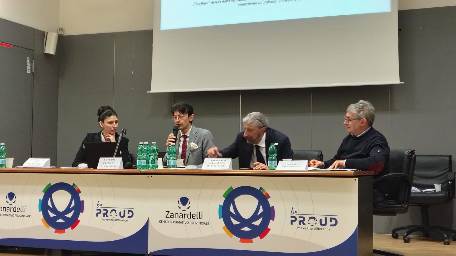 Lo sguardo si è poi ampliato al contesto nazionale ed europeo grazie al contributo del Prof. Luca Pesenti, Professore Associato presso l’Università Cattolica del Sacro Cuore, che ha proposto una riflessione comparata sul rapporto tra lavoro, benessere e clima occupazionale, mettendo in luce le sfide che l’Italia è chiamata ad affrontare in termini di partecipazione femminile, servizi e politiche familiari.